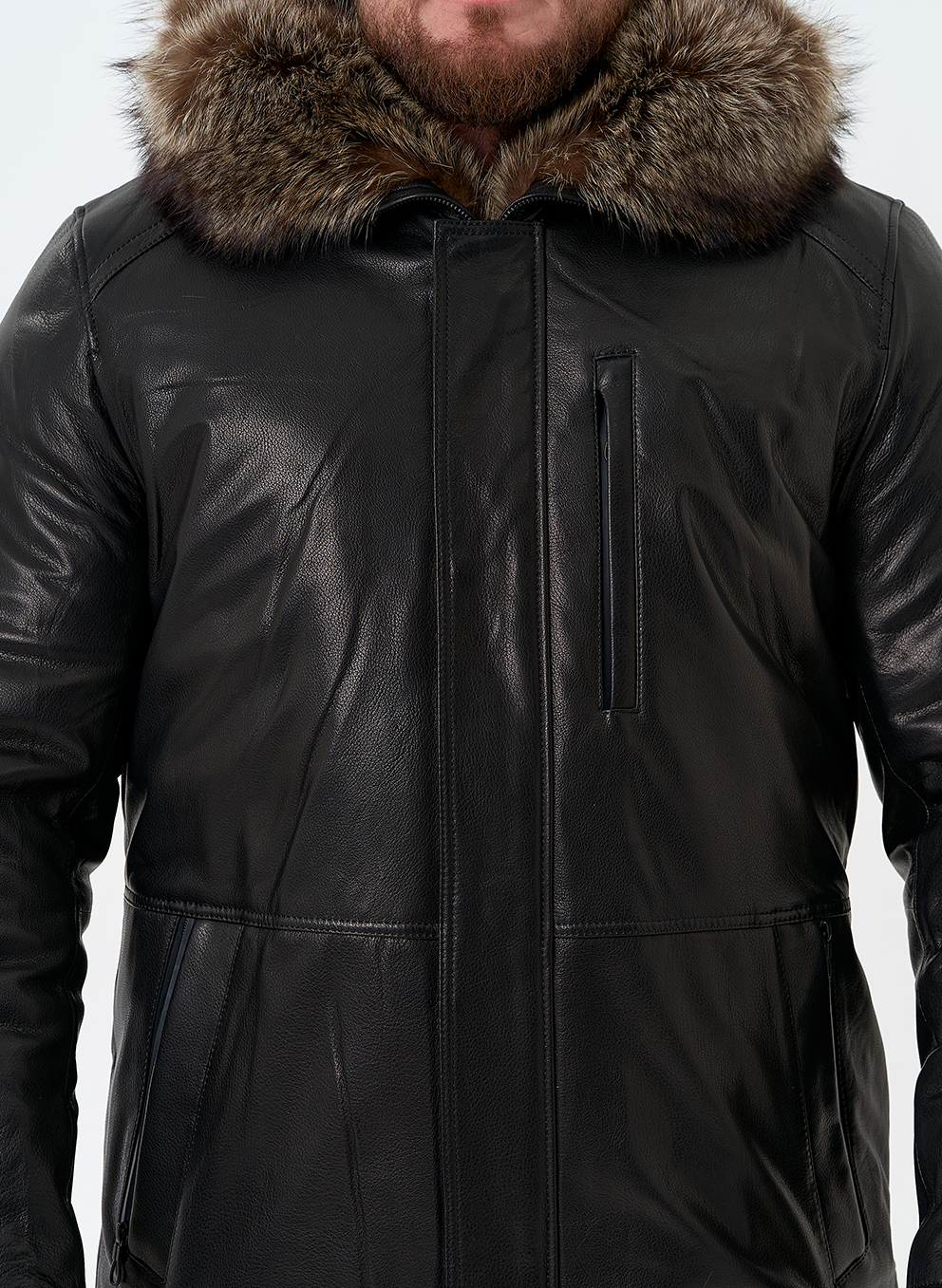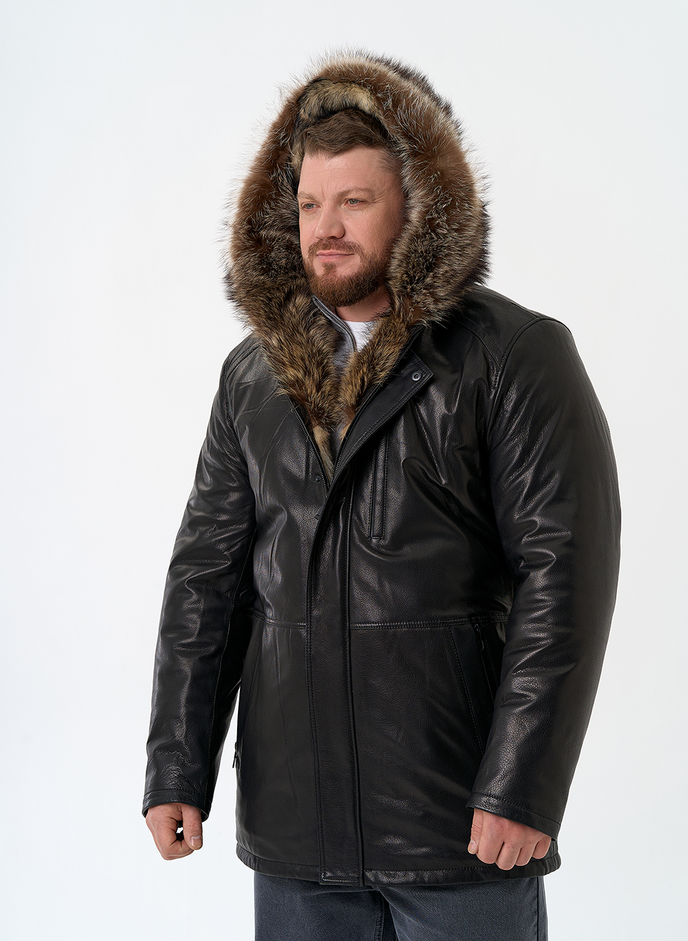 Тип ворота - капюшон, отделка мех енота