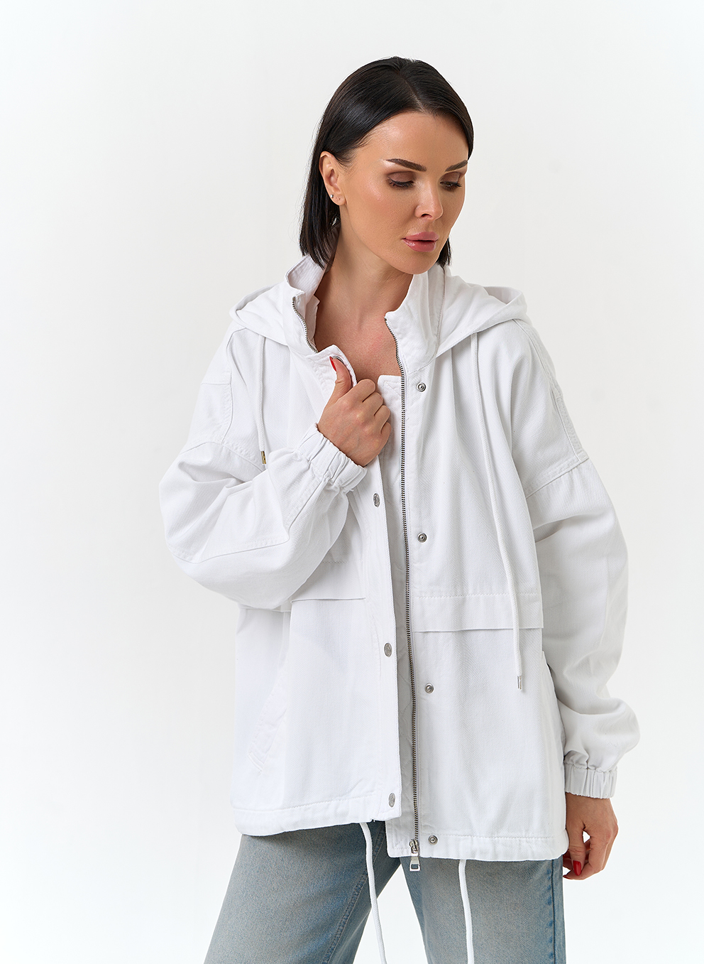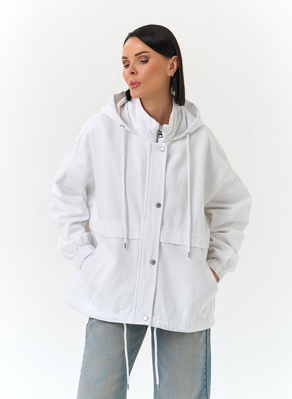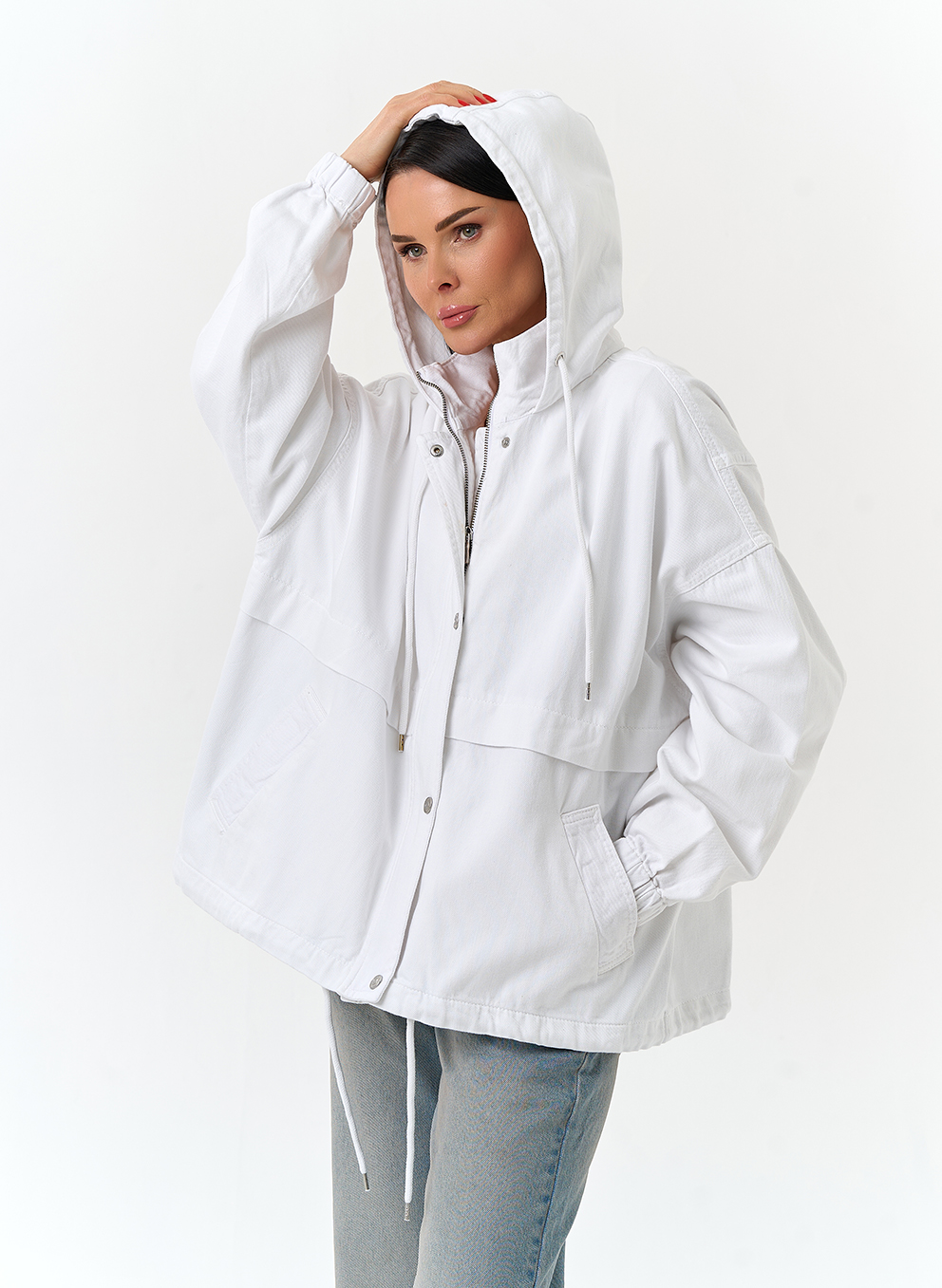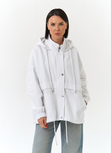 Женская джинсовая куртка с капюшоном (белый)