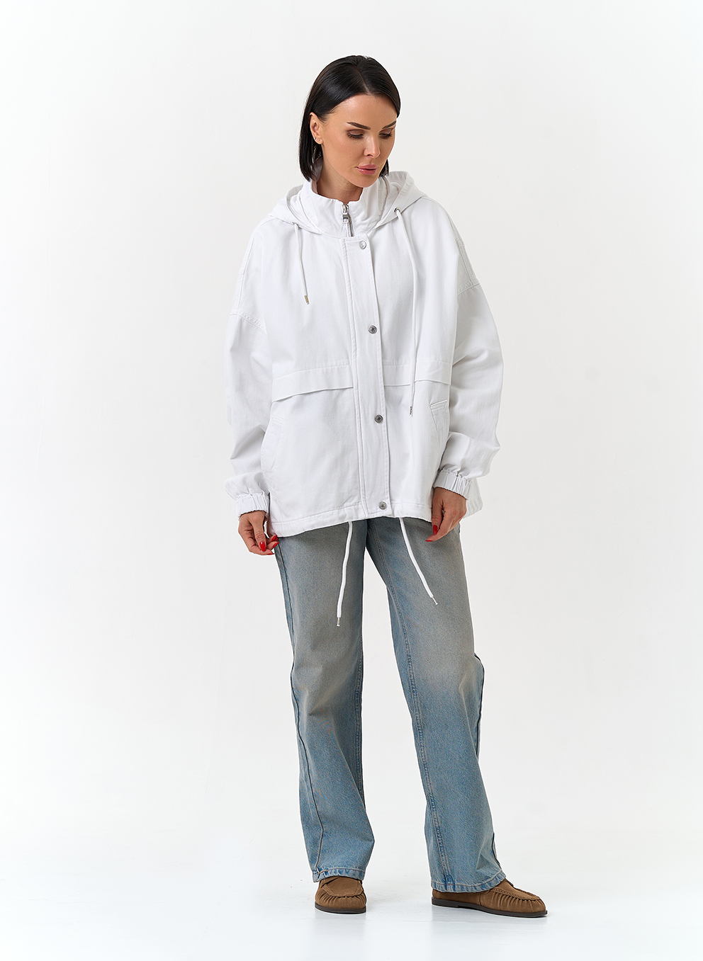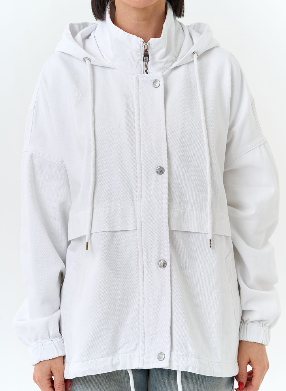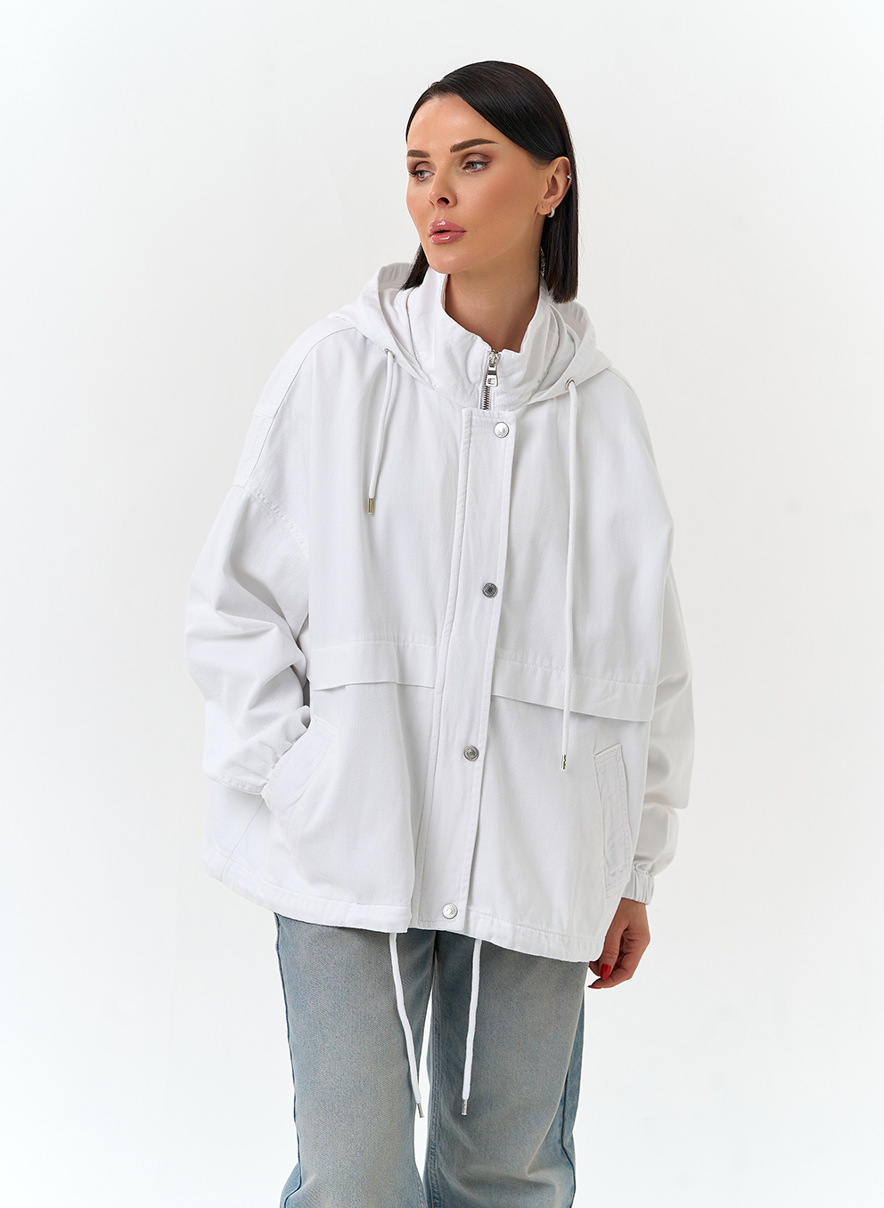 Женская джинсовая куртка с капюшоном (белый)