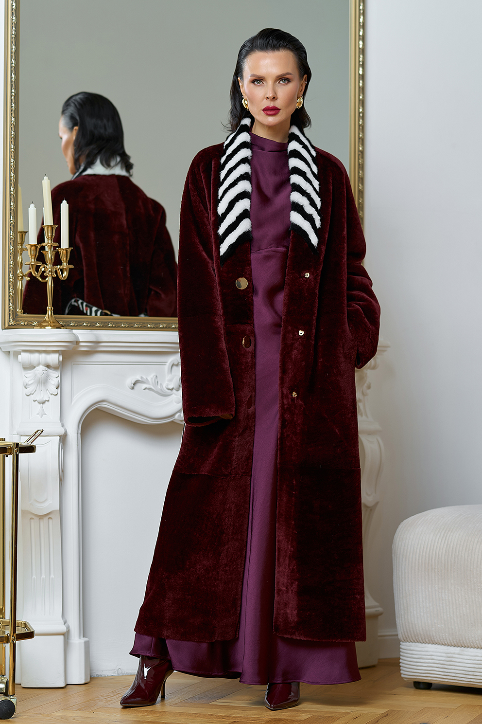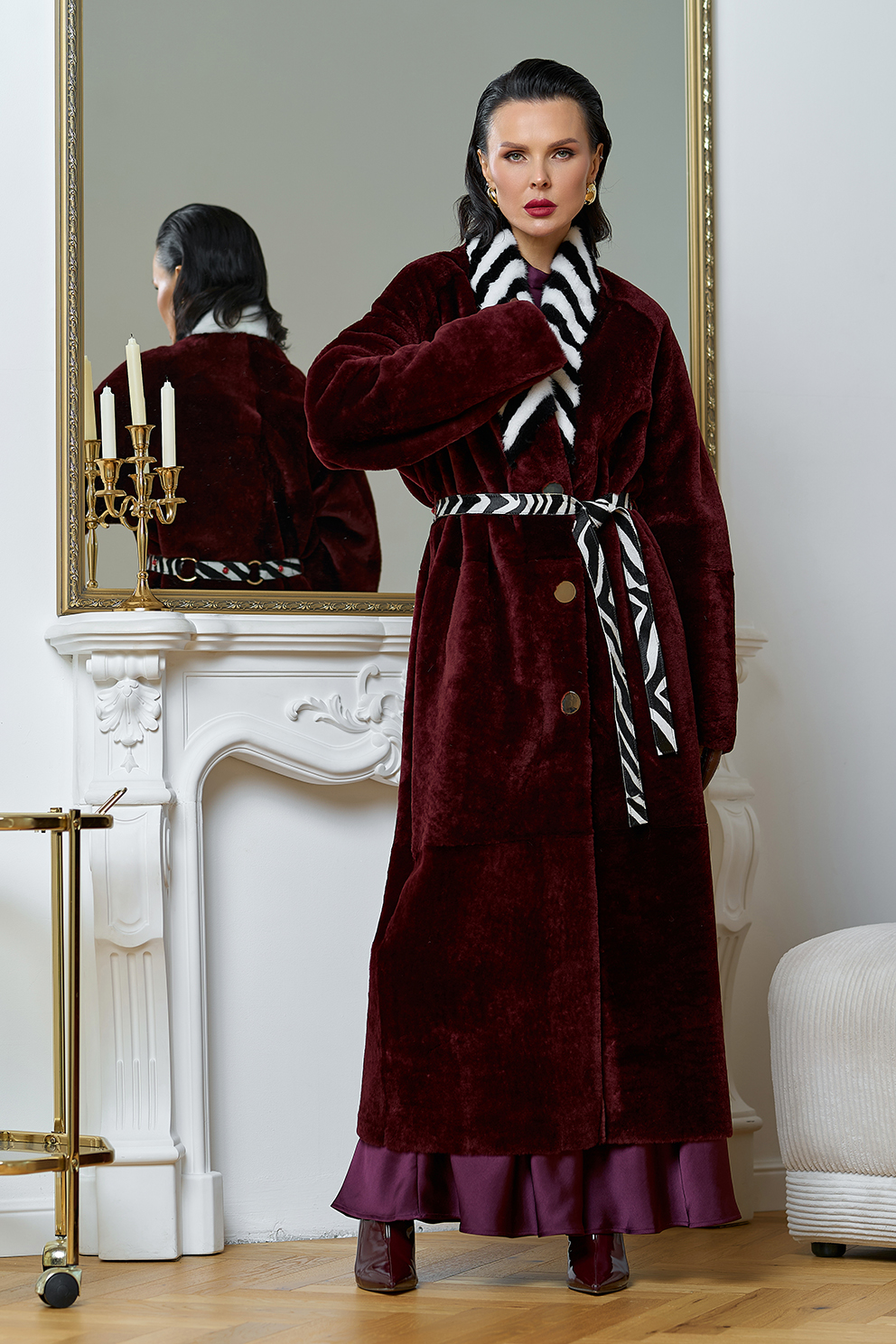Вид застежки - кнопки, пояс из меха теленка Cavallino