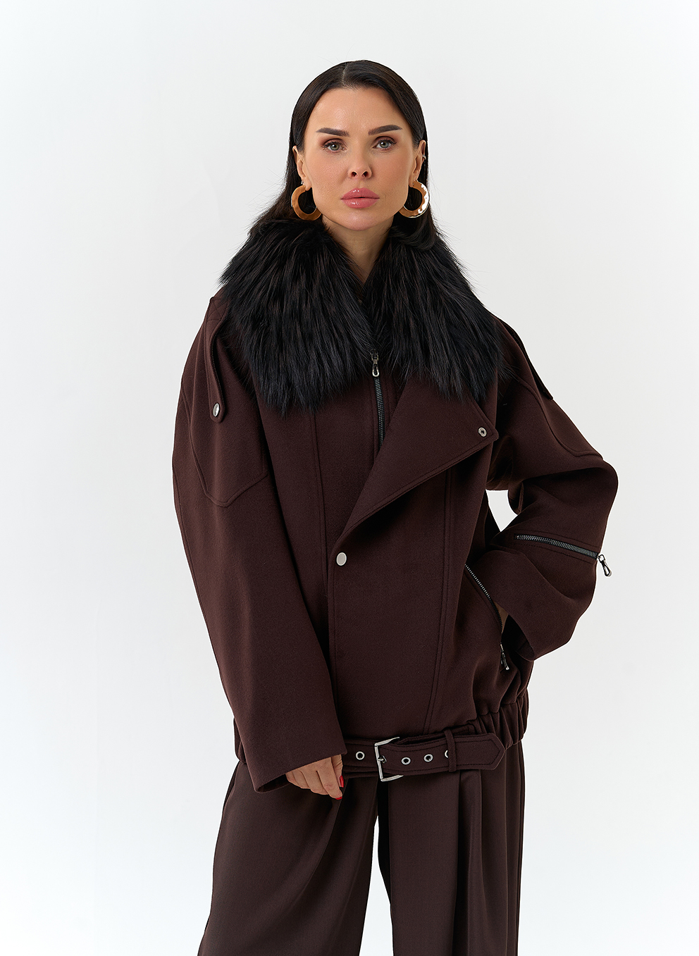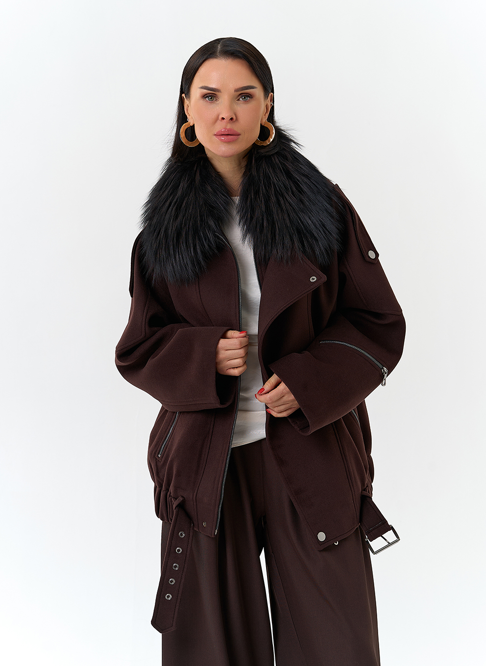 Отделка воротника - съемный мех лисы, цвет черный